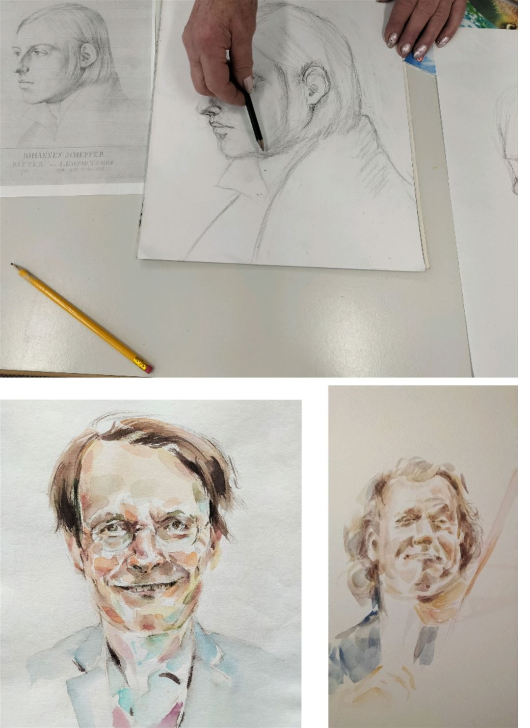 Gesichter, Kopfhaltung und Mimik zu studieren. Wir erarbeiten den Aufbau von